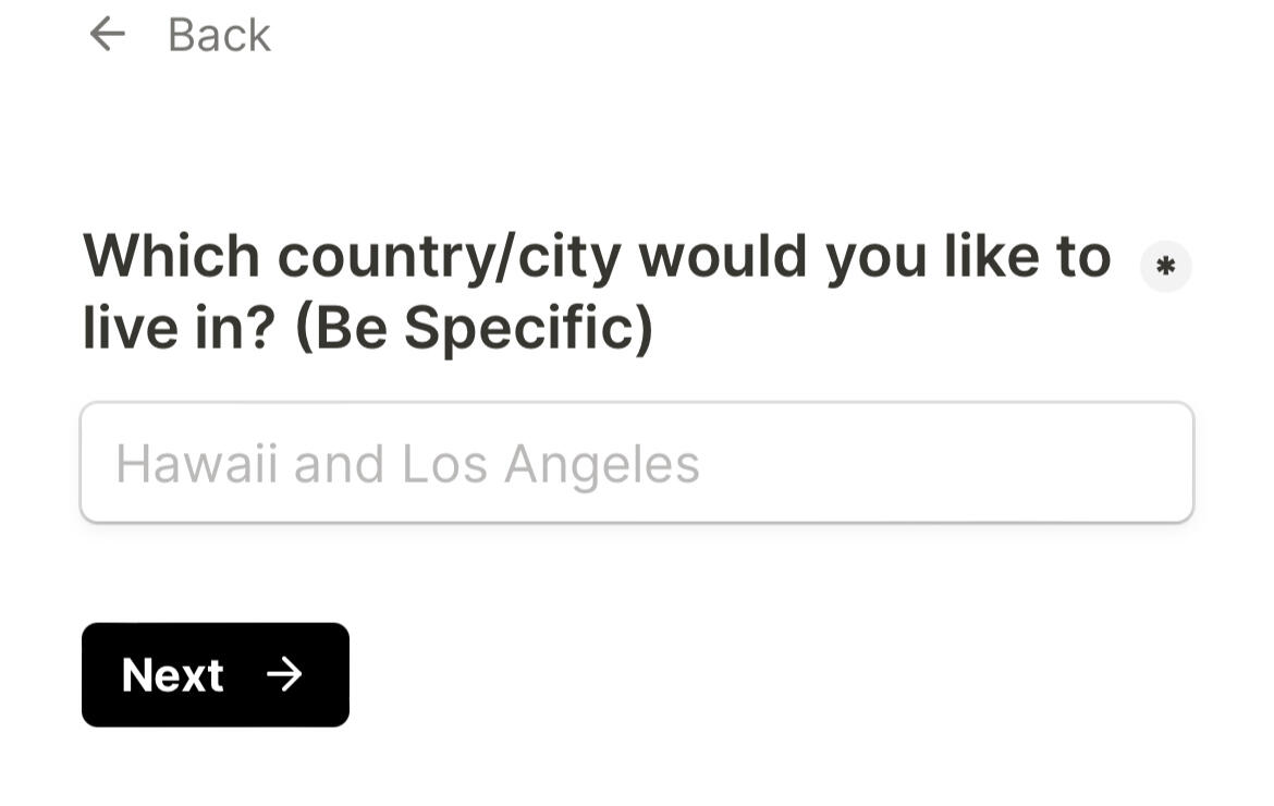 1) What happens after the payment is done?Once your payment is complete, we will guide you through a series of quick and easy questions that won't take more than a few minutes to answer. By sharing your thoughts and desires regarding your health, finances, relationships, and spirituality, we can create a personalized My Life Movie tailored specifically to your unique vision of the future.Below reference image shows you how you will be filling up the form.